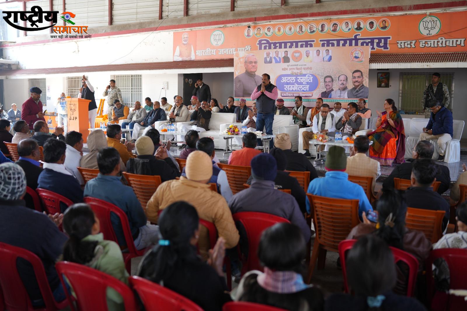 हजारीबाग: पूर्व प्रधानमंत्री और भारत रत्न अटल बिहारी वाजपेयी जी के जन्मदिवस सप्ताह के अवसर पर भाजपा द्वारा आयोजित अटल स्मृति सम्मेलन का मंगलवार को हजारीबाग विधायक सेवा कार्यालय में भव्य आयोजन किया गया। कार्यक्रम की अध्यक्षता भाजपा जिला अध्यक्ष विवेकानंद सिंह, संचालन सुनील मेहता और धन्यवाद ज्ञापन सुमन कुमार ने किया।
