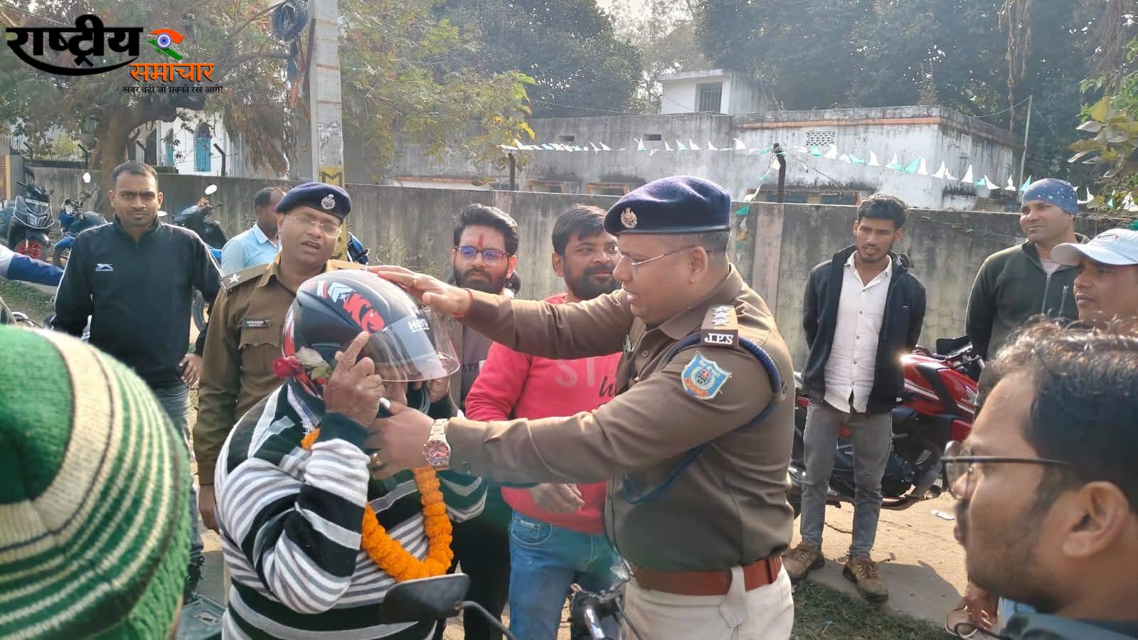चतरा में सड़क सुरक्षा अभियान, एसडीपीओ ने किया हेलमेट वितरण।