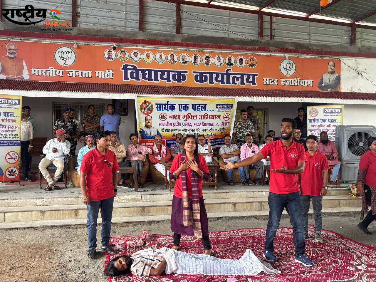 चिकित्सकों ने स्पष्ट किया कि नशा केवल व्यक्ति की नहीं, बल्कि पूरे परिवार और समाज की प्रगति को प्रभावित करता है। कार्यक्रम का संचालन भाजपा नेता दिनेश सिंह राठौड़ ने किया।इस अवसर पर विधायक प्रदीप प्रसाद ने अपने संबोधन में कहा नशा को ना, ज़िंदगी को हाँ कहकर ही हम एक स्वस्थ और सशक्त समाज का निर्माण कर सकते हैं। नशा मुक्त हजारीबाग़ का संकल्प केवल एक अभियान नहीं, बल्कि समाज सुधार का आंदोलन है। मुझे विश्वास है कि यह पहल हज़ारों युवाओं को नई दिशा और शक्ति प्रदान करेगी। इस दिशा में हम निरंतर ठोस और सकारात्मक कदम उठाते रहेंगे। हम सभी की जिम्मेदारी है
