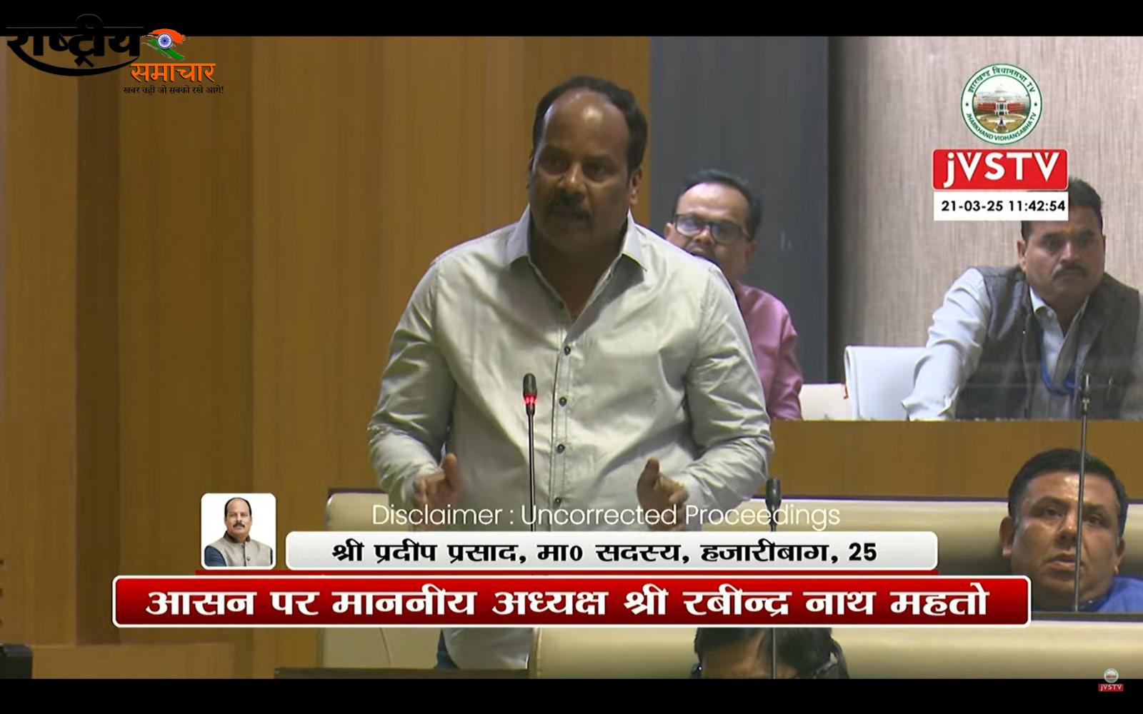 राष्ट्रीय समाचार ब्यूरो आशीष यादव हजारीबाग के मिशन ग्राउंड पर विवाद, विधायक ने सरकार से मांगा ठोस समाधान हजारीबाग:-सदर विधायक प्रदीप प्रसाद ने विधानसभा सत्र
