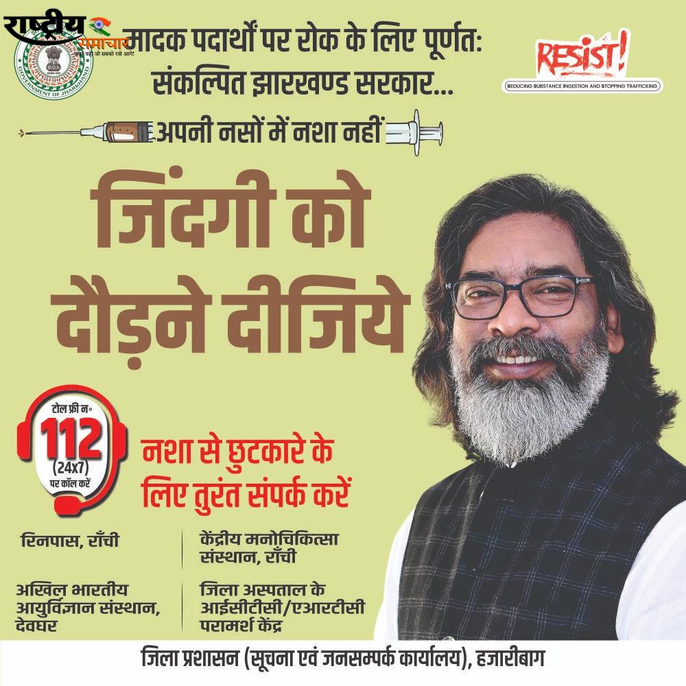 10 से 26 जून तक हजारीबाग में चलाया जाएगा नशामुक्ति जागरूकता अभियान हजारीबाग:-झारखंड राज्य में 10 जून से 26 जून 2025 तक राज्यव्यापी नशामुक्ति जागरूकता