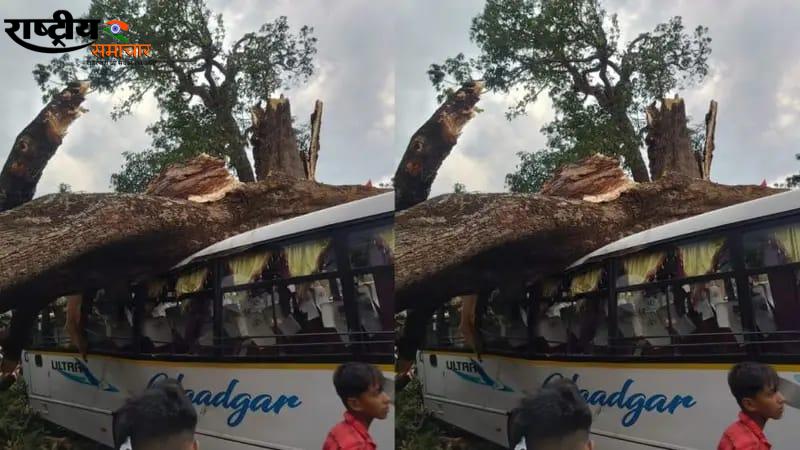लोहरदगा में बाराती बस पर गिरा विशाल पेड़, बाल-बाल बचे दर्जनों लोग तेज आंधी-बारिश के बीच हादसा, समय रहते बस से उतर गए थे सभी
