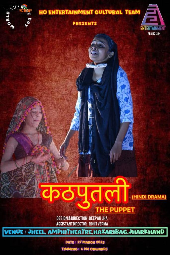 राष्ट्रीय समाचार डेस्क हजारीबाग में ‘कठपुतली’ नाटक का मंचन, समाज को झकझोरने का प्रयास। हजारीबाग:- वर्ल्ड थिएटर डे के अवसर पर 27 मार्च को “हो